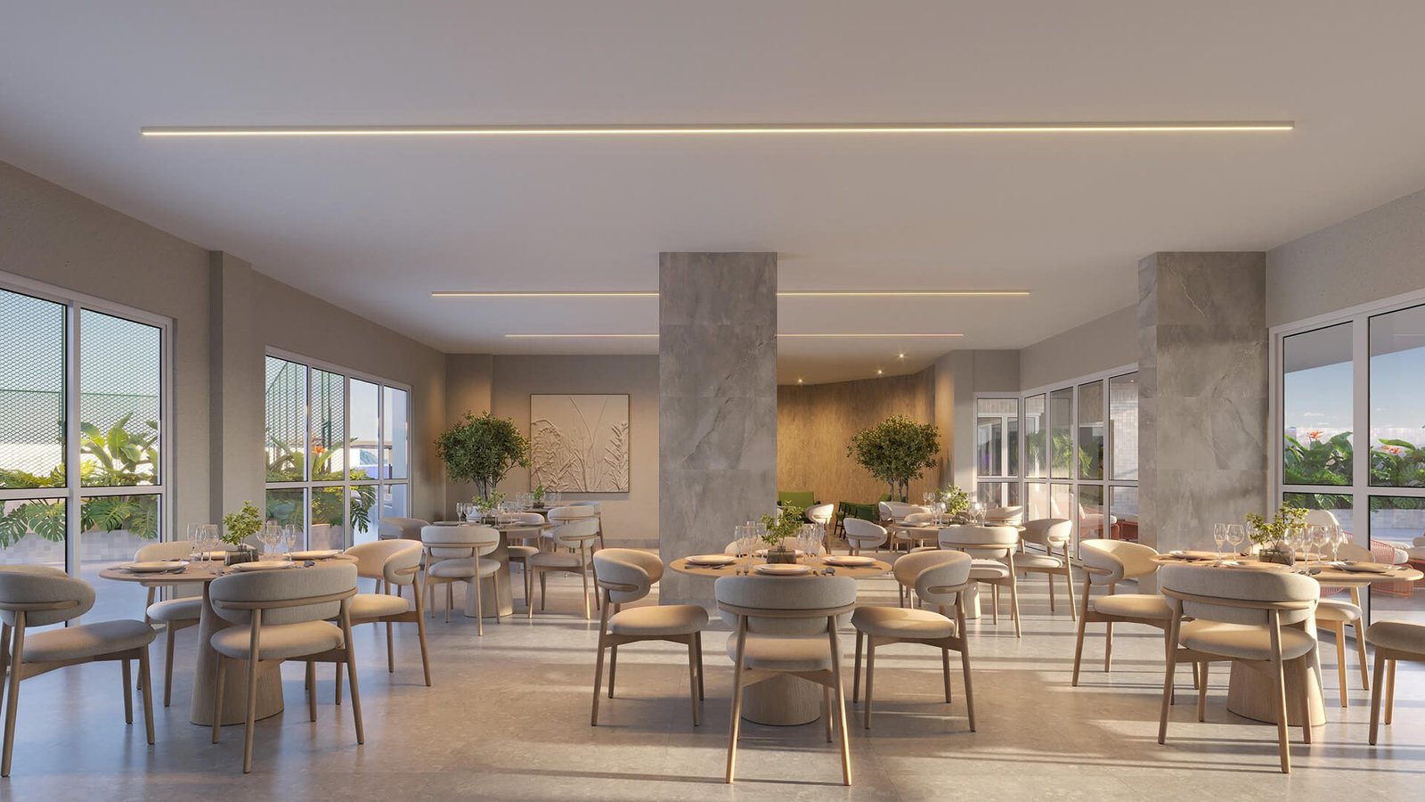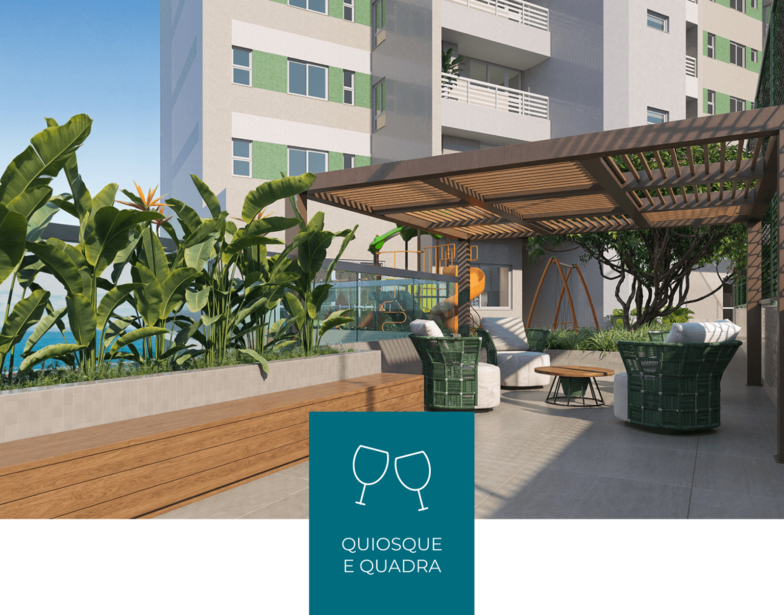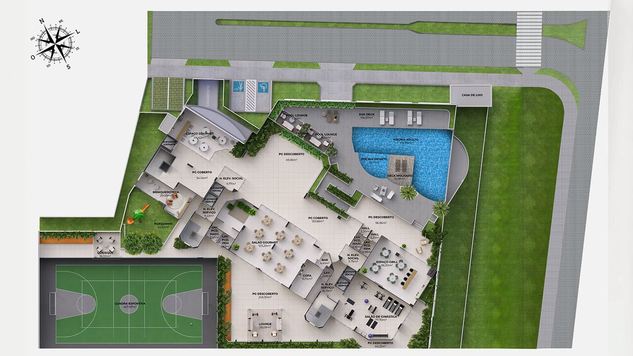 Piscina com borda infinita, espaço grill, espaço gourmet, salão gourmet, lounges, quadra esportiva, parquinho infantil, brinquedoteca, academia, espaço pet, bicicletário, pranchário e muito mais.